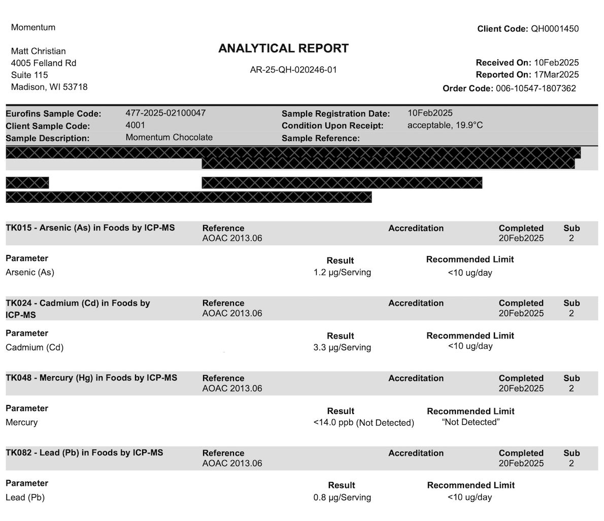 This is a 3rd party test from Eurofins Labs that certifies Momentum is free from E. Coli, Salmonella, Coliform Bacterias, Yeasts, and Molds.